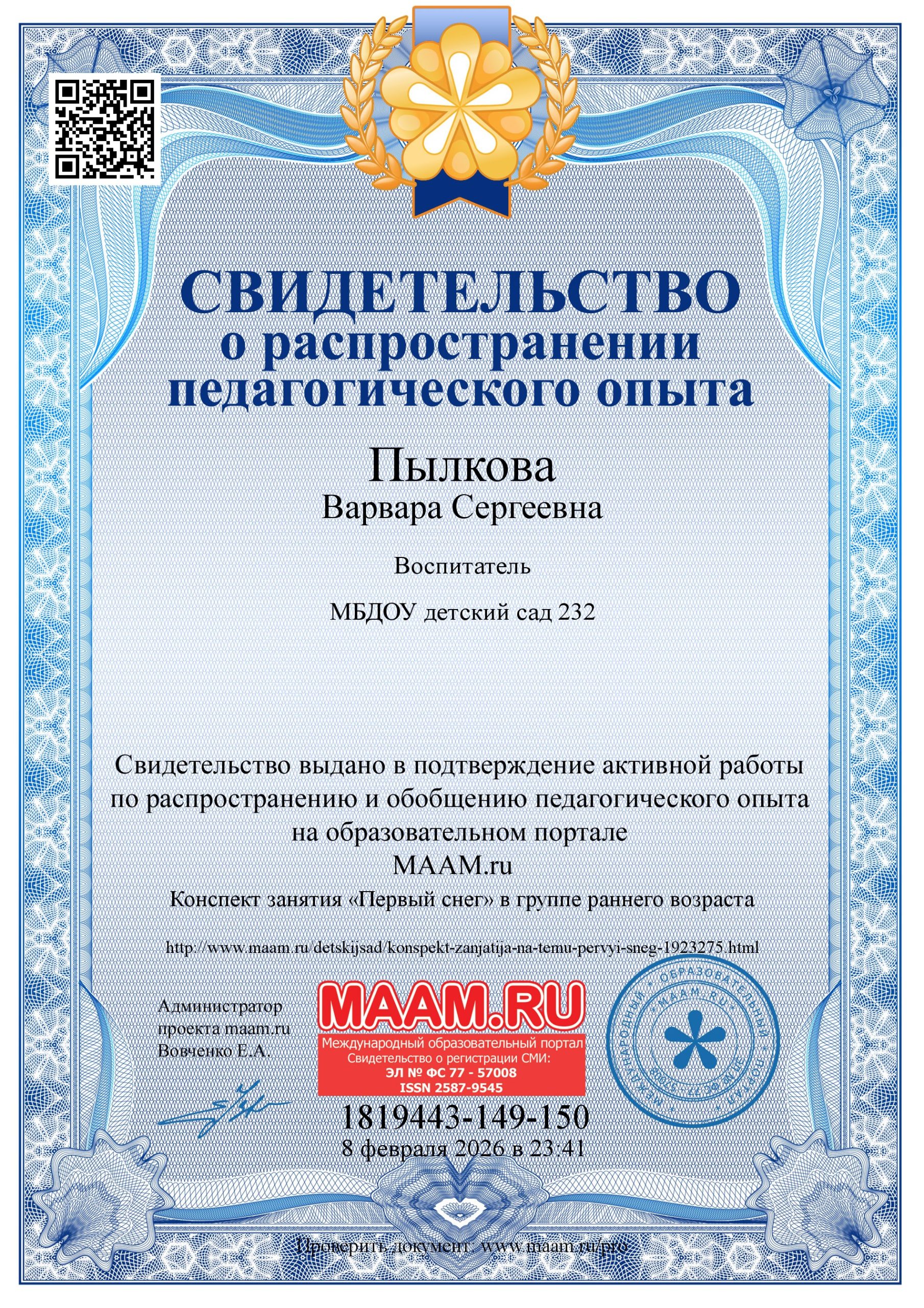 Достижения педагога