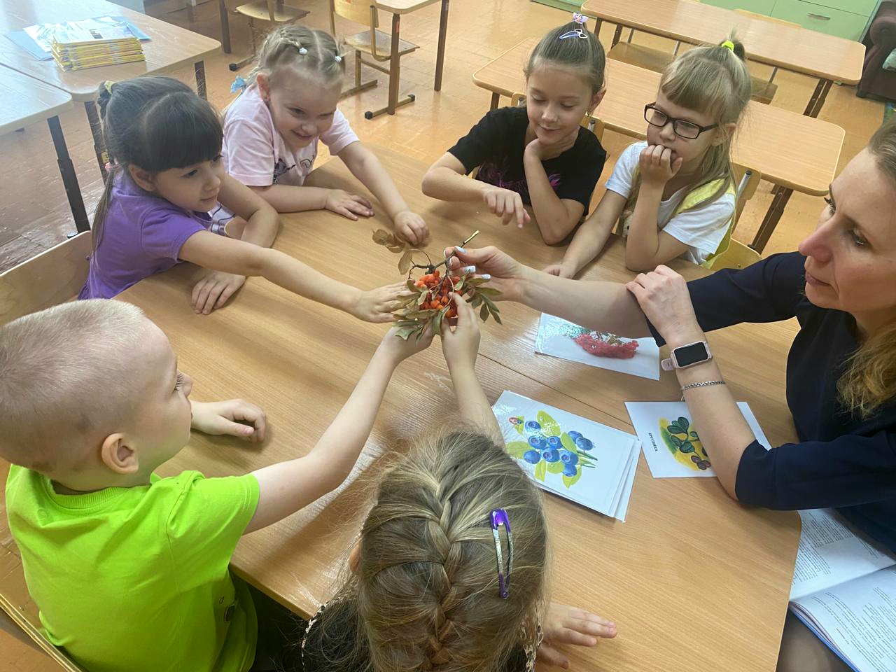 На этой неделе занятия в старшей группе №7 были посвящены лексической теме “лесные ягоды”. Воспитатель Анастасия Александровна через загадки узнавала, какие ягоды знают дети. В лесу растёт много вкусных и полезных лакомств — настоящих сокровищ природы!