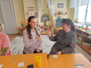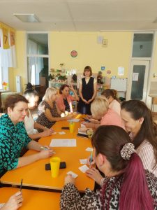 Воспитатели и специалисты упражнялись в невербальной передаче эмоций, чувств и комплиментов, давали характеристики себе и своим коллегам и даже составляли объявления в газету по поиску напарников. Выполняя задания, участники проявили смекалку, сообразительность и творческий подход.