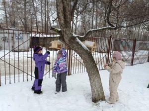 Воспитатели рассказали детям о роли человека в жизни птиц в зимний период, познакомили с особенностями подкормки – семечками, семенами, несолёным салом.