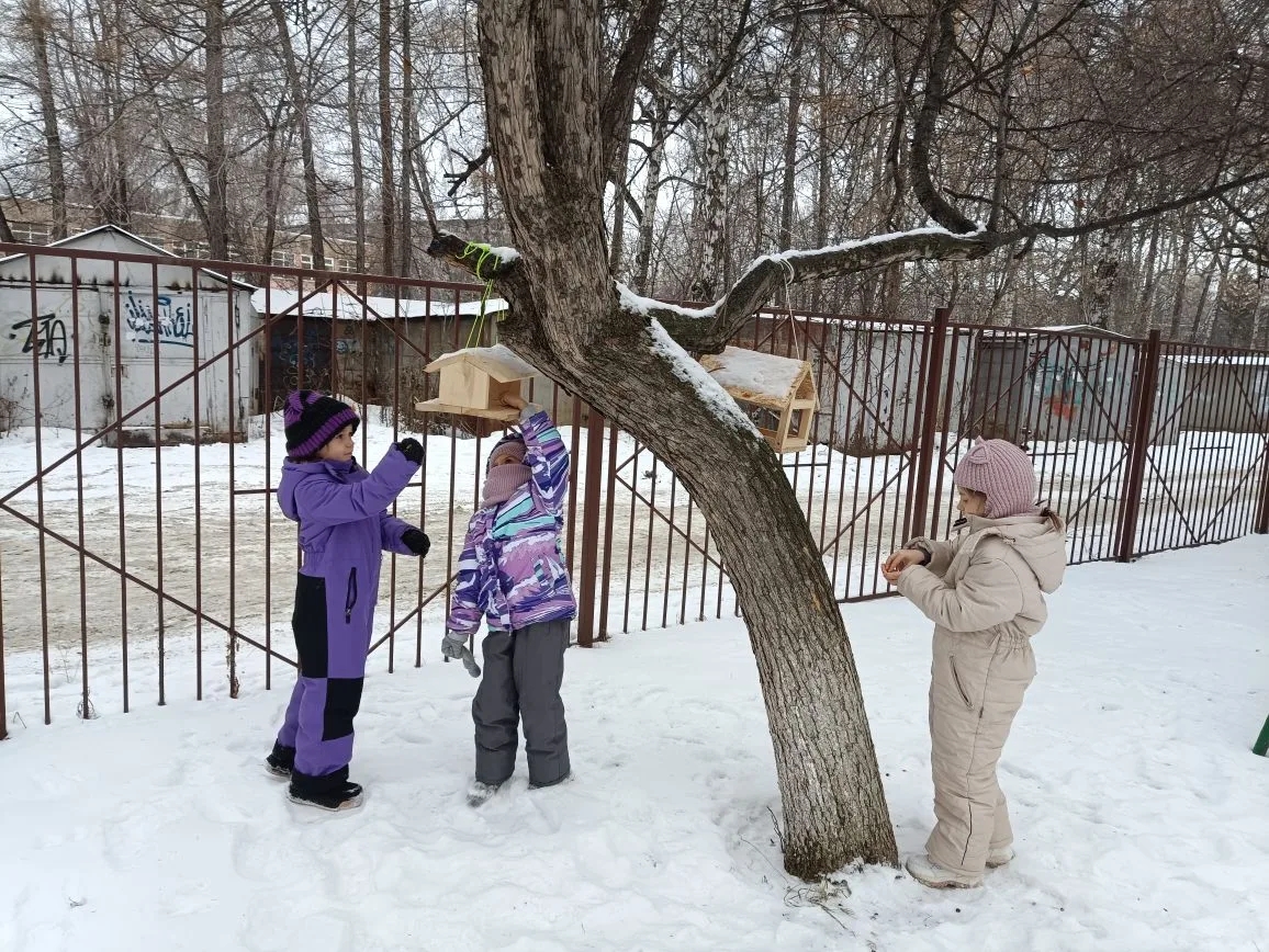 В нашем детском саду с началом зимы проходит волонтёрская акция “Неделя доброты”. Так, воспитанники подготовительной группы №13 совместно с родителями изготовили кормушки для зимующих птиц и развесили их по территории Учреждения.