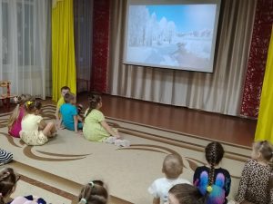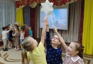 Слушали разные произведения и выбирали подходящие, пели песни, рассматривали слайды под красивые мелодии. А ещё, конечно же, играли! Ведь без весёлых игр никак зимушке не обойтись: собирали сугробы из разных снежинок, рисовали узоры на окнах серебряными карандашами.