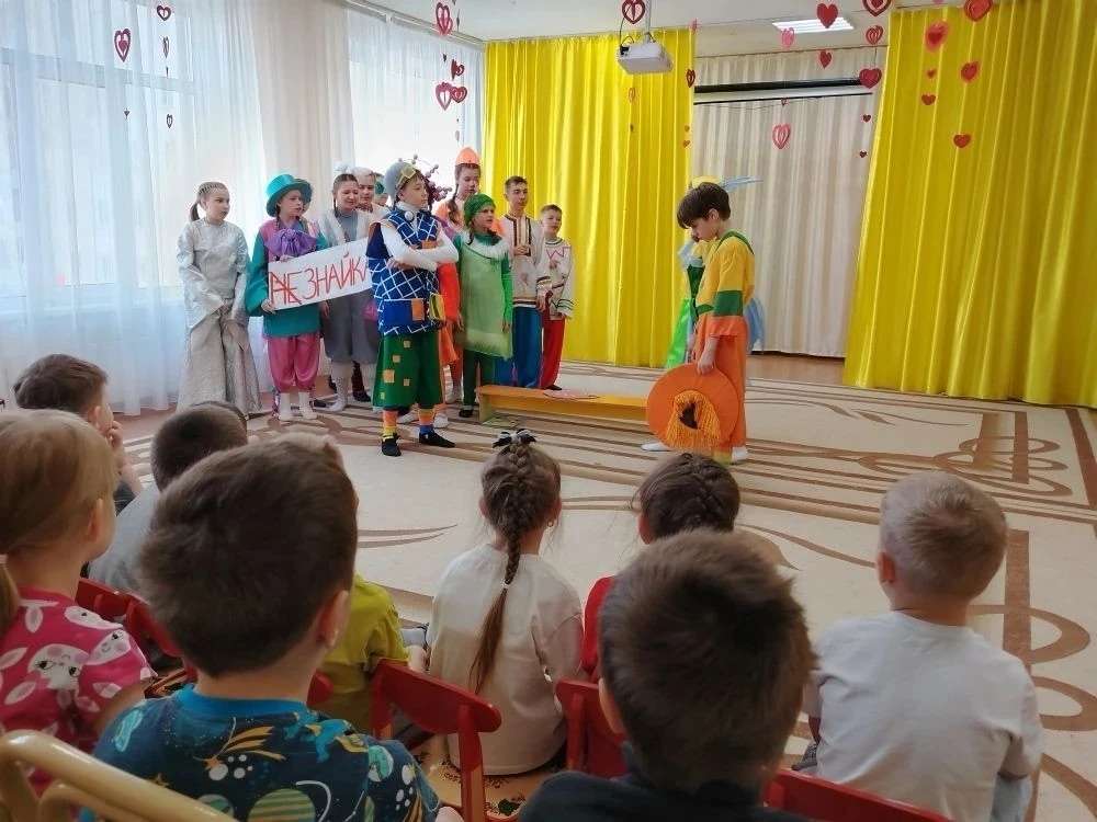 Веселое и яркое представление с музыкой, танцами, смехом и юмором под названием «Незнайка в Зеленом городе» доставило немало приятных минут дошкольникам. Спектакль не только веселил ребят, но и в очередной раз заставил задуматься о том, что такое настоящая дружба, доверие, честность, доброта.